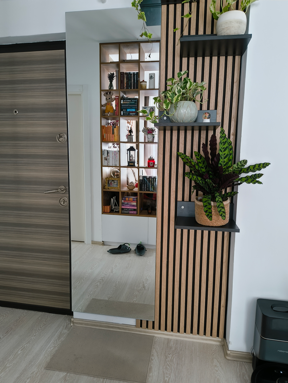 Această soluție transformă holul într-un spațiu viu, personal și primitor.