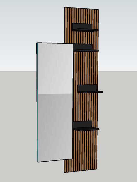 Soluția aleasă a fost o oglindă cu riflaj din lemn, care: